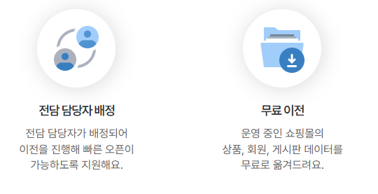상품, 회원, 게시판 데이터를 비용 없이 이전해 드려요.