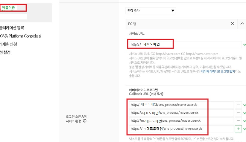 ๋ด ์ ํ๋ฆฌ์ผ์ด์ > API ์ค์ > ๋ก๊ทธ์ธ ์คํ API ์๋น์ค ํ๊ฒฝ์์ Callback URL์ ์ถ๊ฐํด์.