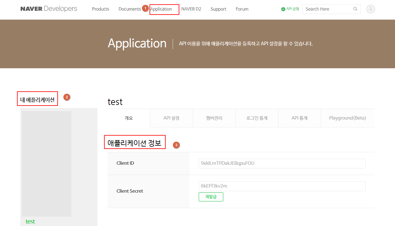 Client ID / Client Secret์ ๋ค์ด๋ฒ ๊ฐ๋ฐ์ ์ผํฐ > ๋ด ์ ํ๋ฆฌ์ผ์ด์ > ์ ํ๋ฆฌ์ผ์ด์ ์ ๋ณด์์ ํ์ธํด์.